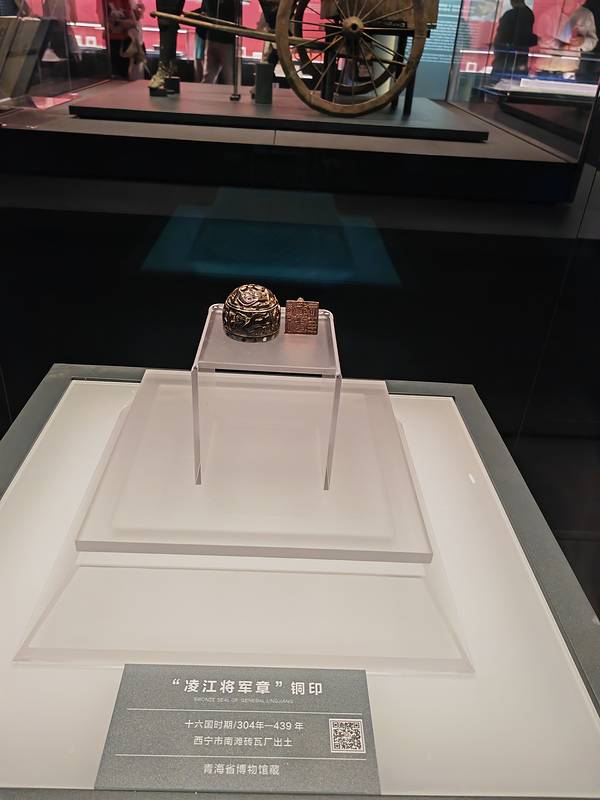 金骆驼 博物馆旁边就是南凉虎台遗址公园,与青藏高原野生动物园相距也不远,可以放在一起游玩青海省博物馆位于西宁市西关大街58号,新宁广场东侧。 博物馆免费不免票,用有效证件换门票。营业时间是周二到周日,周一闭馆。参观时间:夏季:9:00—16:30;冬季:9:30—16:00。到博物馆的公交车很多,我们是乘...青海省博物馆位于西宁市西关大街58号,新宁广场东侧。 博物馆免费不免票,用有效证件换门票。营业时间是周二到周日,周一闭馆。参观时间:夏季:9:00—16:30;冬季:9:30—16:00。到博物馆的公交车很多,我们是乘坐25路去的。下了车走过去,先看见藏羊地毯,有点莫名其妙,原来博物馆的后面是藏毯研究中心,所以侧面是卖地毯的。正面看建筑很气派,台阶直通二楼。前面的新宁广场很大,有很多跳广场舞的。博物馆设有游客服务中心,可提供讲解和茶水服务。当然,不用讲解自己看也可以,因为全馆wifi覆盖,很多文物都有二维码,扫一下就有文字和语音讲解。