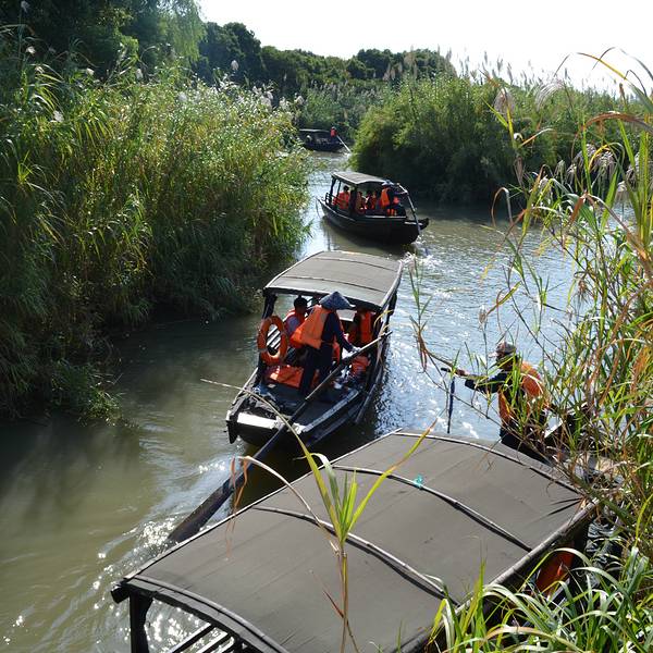 沙家浜的湿地科普园对于横泾老街的另一侧,湿地科普园由很多景点组成,文学馆、湿地自然学校、观鸟栈道、湿地渔乐园等等。游客参观湿地科普园,可以从钓渚渡桥进,天寿桥出。湿地科普园的植物面积非常大,而且游客又少,走在道路上,感觉拥抱了整个大自然。一大家子人,其实没有走到很里面,就在这个区域内拍点照片,就返回横泾老街了,整个科普园的占据了整个沙家浜风景区一半的面积。 沙家浜景区内还有一个体验是一大特色,就是景区内的手摇船,在买门票的时候,有手摇船的联票的,不买联票,手摇船的费用为35元/人,一船可以乘8人;景区内还有电动船,电动船还分中型、大型和豪华,中型的40元/人,10人起售,大型的25元/人,20人起售,豪华的60元/人,6人起售。因为我的孩子比较小,而且我对乘手摇船有心里阴影,因此就没有体验,就看着家里其他成员体验。乘坐手摇船,穿梭于沙家浜的芦苇荡之间,是来沙家浜景区游玩的一大乐趣。 展开