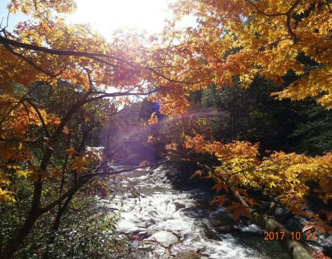 漫步在鹞落坪的峡谷里,秋风轻拂,蓝天通透,清爽宜人,两旁的山林五彩斑斓,谷底的清泉哗哗作响,宛如在天然的画廊中,在欢快的音乐伴奏下,欣赏着一幅幅色彩浓郁的油画画卷。脚下蜿蜒的公路平坦而干净,首秋韵交响,让人精神振奋!