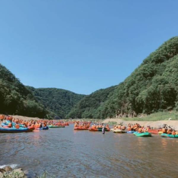红河谷位于辽宁省抚顺市清原,是东三省最大的漂流。早上7点20在金融中心地铁口集合,下地铁就能找到很方便。坐车大概2个半小时。到了很快就进去了。但是得等到12点才能漂流。可能是我去的时候有点冷。人还是比较少。去那需要买好手机防水袋,盆和水舀子。个人认为水枪没啥用。到了直接上盆。漂流打水仗还是特别爽的。全程大概漂流2个半小时。河中有20多个急流。特别过瘾。导游也是挺认真负责的。去之前都会给我们耐心讲解。去了必须带两套换洗衣服。雨衣根本没有用。直接穿泳衣就好了。