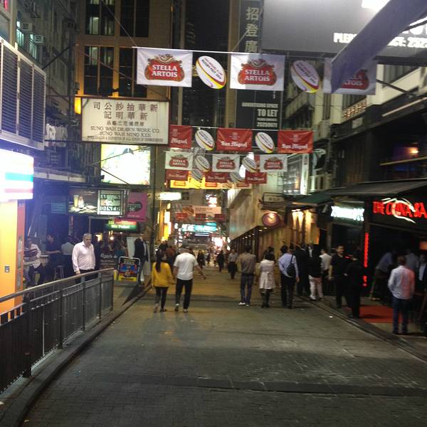 主要为一个小方块街区,四面的街上都是餐厅和酒吧,TVB剧上经常出现的画面基本上也就是街的全景了,只有那么长,很佩服摄影师的镜头,让本人从小以为这是条很长滴街^,两边的餐厅都提供酒水,价格适中,在香港不算贵,外国人很多。