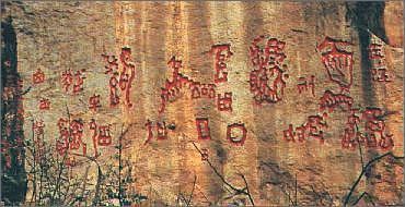 这是一块刻在巨大红色石头上的一大段文字,也看不出是不是连贯的一段文字还是一些词汇,总之还是没有...这是一块刻在巨大红色石头上的一大段文字,也看不出是不是连贯的一段文字还是一些词汇,总之还是没有能力看懂它们,也是一个凑热闹的游客了,研究了半天也看不出它们想表达的意思,导游也说不出个所以然来。