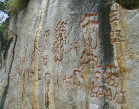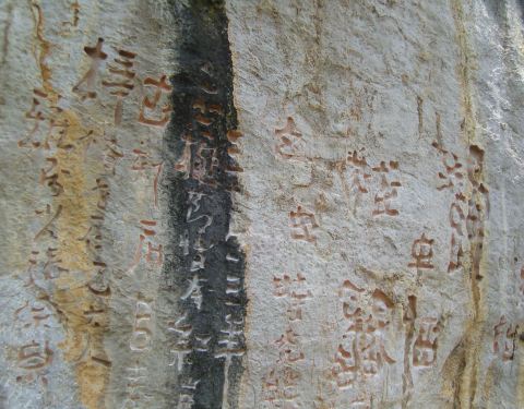 我们却只在山脚下找到一块刻有红崖天书的“缩小”版发现石碑,石碑后是一座高山,我们四处眺望,怎么...寻找红崖天书。 在黄果树游览的最后一个景点就是红崖天书,包的车子把我们景点标注的地址,我们却只在山脚下找到一块刻有红崖天书的“缩小”版发现石碑,石碑后是一座高山,我们四处眺望,怎么也找不到天书的踪影...寻找红崖天书。 在黄果树游览的最后一个景点就是红崖天书,包的车子把我们景点标注的地址,我们却只在山脚下找到一块刻有红崖天书的“缩小”版发现石碑,石碑后是一座高山,我们四处眺望,怎么也找不到天书的踪影。 正当我们准备放弃的时候,突然发现山体上的绿草边似乎有什么东西,好奇走近一看,原来是一排因为被长势过高的绿草遮挡住的栅栏,而这栅栏正指引着一条上山的路,于是我们兴匆匆的沿着几乎已经被杂草淹没的山路,爬到了半山腰上,找到了红崖天书。 对于这个不知道是什么时候出现的,也不知道用的是什么文字书写的红崖天书,虽然人们在明代就发现了它,也对它研究了近六百多年,却始终无法破解它的内容。崖壁上的天书,如画似字,大小不一,多少年来,世人对它有多种解读和猜测,却没有一种能得到完全的认可,而作为游客的我,带着好奇心来到这里,只为能亲眼看看这千古奇迷。 展开