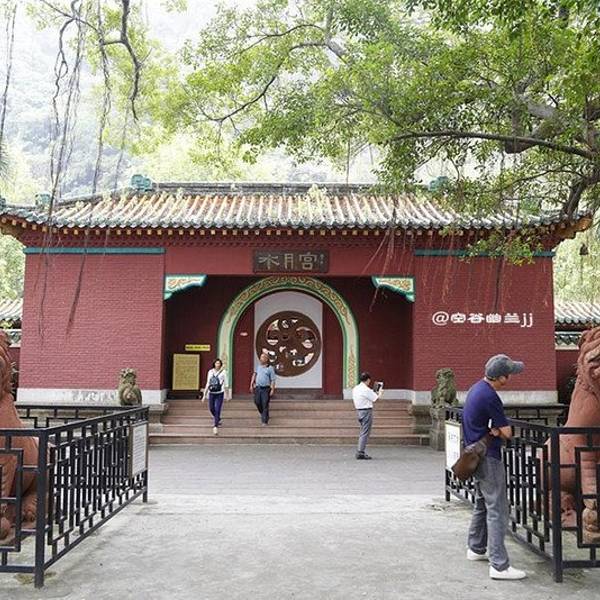 水月宫占地面积6000平方米,建筑面积2500平方米,为钢筋混凝土仿古殿式结构,由大殿、东厢、西厢、后殿4部分组成:大殿,飞檐斗拱、彩釉生辉、华丽堂皇;东西两厢,精美质朴、宽敞明亮,建有回廊相连;后殿,一座两层高的楼阁,依岩建在高台上,尤显其巍峨雄壮。