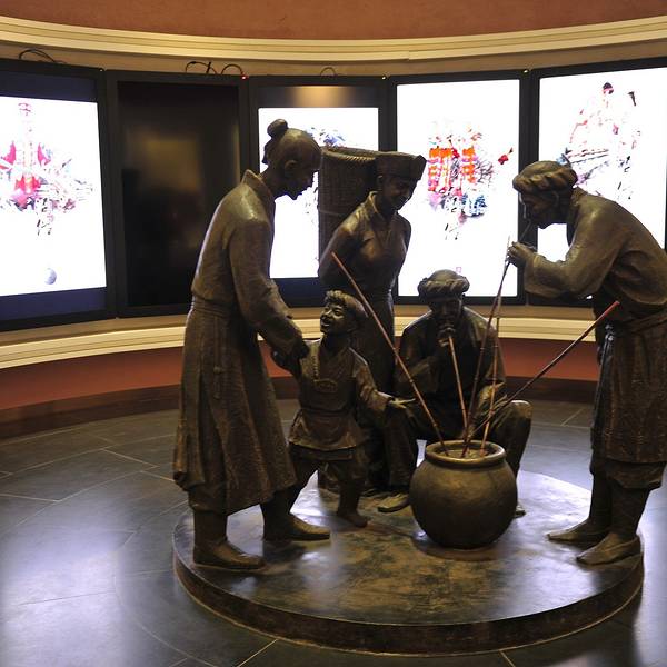 茅台国酒文化城是中国茅台酒厂(集团)有限责任公司经过三年艰苦努力而建成。国酒文化城占地3000余平方米,建筑面积8000余平方米,规模浩大,气势恢宏,建有汉、唐、宋、元、明、清及现代的七个馆。每个馆均体现了各个时代建筑美学的典型风格:汉馆古朴巍峨,唐馆富丽堂皇,宋馆古典玲珑,元馆粗犷明快,明馆精巧别致,清馆华丽凝重,现代馆明晰流畅,洋溢着时代的气息。馆内大量的群雕、浮雕、匾、屏、书画、实物、图片和文物从不同的角度介绍了中国历代酒业的发展过程及与酒有关的政治、经济、文化、民俗等,展示了我国酒类生产的发展沿革,工艺过程和酒的社会功能使人感到法规的严肃史志文献的庄重,文学艺术的生动,技术指标的严谨等酒文化多姿的风采,反映出人们在造酒,用酒,饮酒过程中表现的思维方式,民族性格,宗教信仰,伦理道德,精神情操等酒文化的核心内涵。