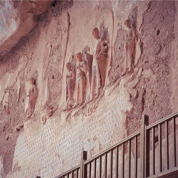 又因有摩崖悬塑七佛,故俗称七佛沟。岩洞一侧崖面上以木桩栈道分为壁画和悬塑造像两部分。洞内原有七窟,现残存砂崖面雕像和壁画,造像丰满,神态各异。特别是菩萨像丰盈清秀,颇具北周特点,部分造像含有西魏遗风,是研究我国早期石窟艺术的重要资料。