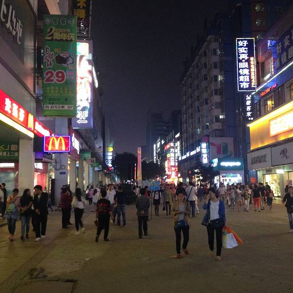 费用:免费长沙的黄兴路步行街在长沙是个很有人气的地方,基本上逛街都要来到这里,想想这个步行街已经有20多年的历史了,我上学的时候也来过这里,当时的服装中低档为主,价格便宜,质量很差。如今,黄兴路步行街经过发展...长沙的黄兴路步行街在长沙是个很有人气的地方,基本上逛街都要来到这里,想想这个步行街已经有20多年的历史了,我上学的时候也来过这里,当时的服装中低档为主,价格便宜,质量很差。如今,黄兴路步行街经过发展,在全国都算的上有名气了。黄兴是华兴会的创始人,在反清创立民国的过程中算的上是数一数二的人物,这条街以他命名就是为了纪念他,不过今天的黄兴路已赋予不同的意义,成为崭新的商业街。我是20年后的一个傍晚,天空飘着丝丝的小雨,一家人住在附近的酒店,走路200多米就到了,正值华灯初上,但是商业街人还真不少,一个可乐厂家在搭着舞台搞活动,现场答题给可乐奖品,孩子举手几次参与,都没机会,只好悻悻而去。这条街我先是从人民路往南走,两边有海澜之家、以纯、李宁、361度、森马、耐克、新百伦等运动品牌,还有麦当劳等快餐店。路边还有一些挑着担子卖米酒、莲蓬的小贩,绿色的莲蓬看起来非常新鲜。黄兴路的东西小巷子还有很多小吃,这些民间的小吃店面不是很大,小吃信奉着“民间的就是世界的”,味道应该很正宗。还有一个日本店,卖得日本日用产品,没有标价的都是10元,有点意思。第二天上午我们又从人民路往北走北部的黄兴路,有大嘴猴、3-4家阿迪达斯专卖店,在大嘴猴,打折,我买了情侣的棒球服,5折。再往北穿行就是解放路,平行解放路的就是坡子街,解放路那有个悦荟商厦,坡子街最东段与黄兴路交汇处有个悦方商厦都是连在一起的,非常适合爱逛街的人,这两个商厦有些高大尚,还是有些档次,黄兴路算是平民化的购物地点了。