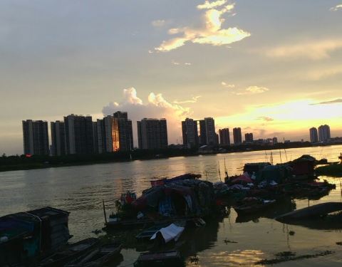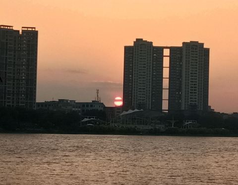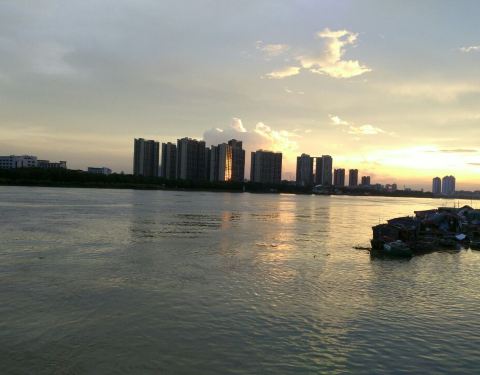 有江边跑道,沿江而建,散步跑步骑自行车都很舒服,江景很美啊,还有图书馆,江上有渔船,在阳光下很有意境。晚上好热闹,有广场舞,很亮,人也不少,赞。