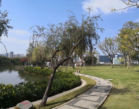 适合带老人小孩玩的公园,有时候还有人钓鱼。环境很好,位置在厦门市中心筼筜湖畔,适合全家带小孩一起过来散步的好地方。南湖公园比较好的地方就是花很多,配套的休息座椅也够,设计的比较人性化,比较喜欢这个公园。