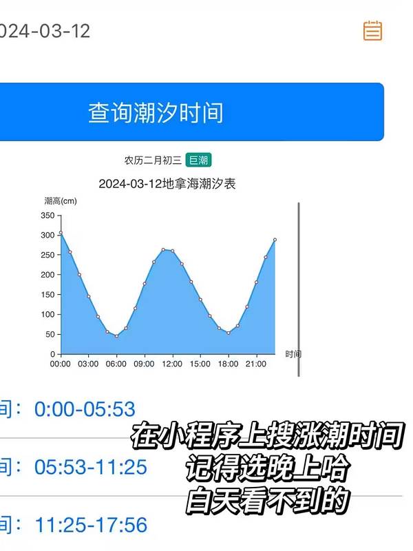 晚上7点涨潮开始到清晨(夭越暗越明显)