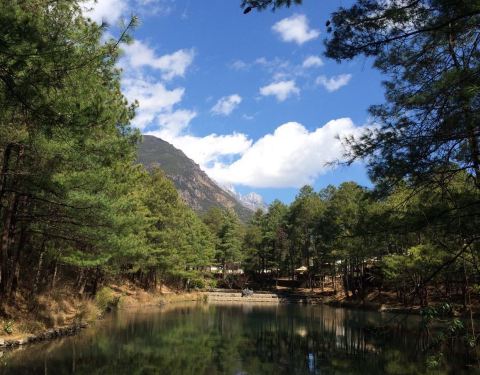 从丽江古城打的到玉龙雪山,费用在100元左右,姊妹湖就在玉龙雪山山脚下。