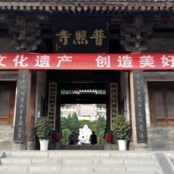 普照寺位于渭南市韩城市昝村镇卫生院西侧,始建于元延祐三年(1316年)。其建在10余米高的古寨堡南端,居高临下,是韩城元建标志性建筑。 普照寺和司马迁墓祠一样依山而建,其主要建筑大雄宝殿为元朝所见,里面的佛龛具有很高的艺术价值.门票20