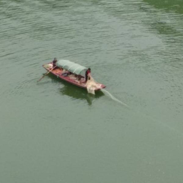 这座木制吊桥,导游说现在仍然在使用。吊桥回程的时候,导游会在小木船上唱两首山歌,然后开始推销一本介绍神农溪的中英双语小册子几一张山歌光碟,一套售价为100元,如果只买光碟则为40元……大家可以根据自己的需求选择购买。导游船上的纤夫每天只能划一次船,有时候甚至两天才划一次,因为收入低且费力,所以纤夫大多数都是七十岁左右的老人。纤夫小木船游览结束后,就乘坐来时的那艘普通游船再回去。