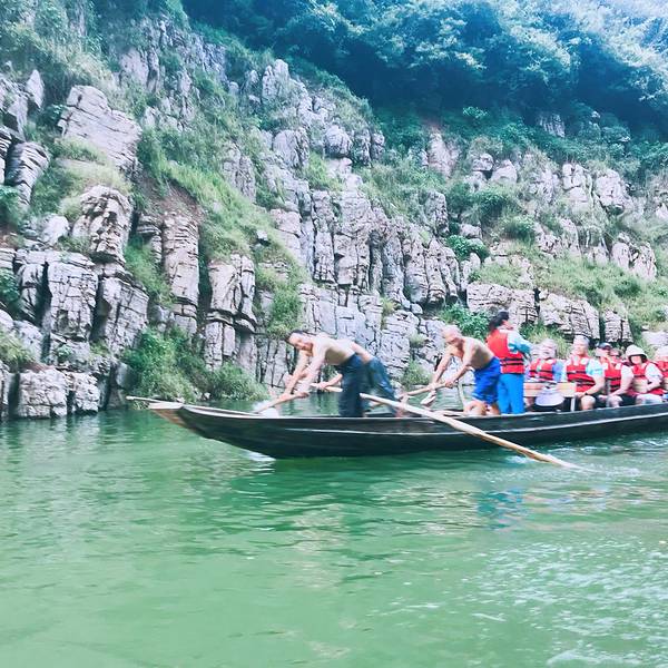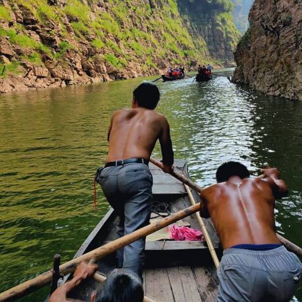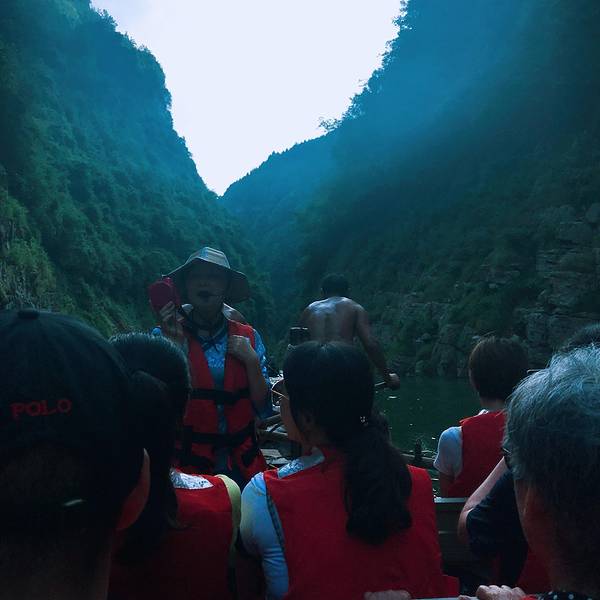 现在码头换成可乘坐约400人的普通游船,然后行驶50分钟,到达神农溪渡口,再换乘可乘坐约17人的小木船。