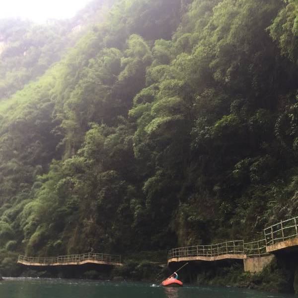 我们开了车把车停在山顶,全程漂完了,在包了私家车,一个车150上山取车和换湿衣服,这个地方是因为没有提前搞情况形...仙女山-彭水-阿依河