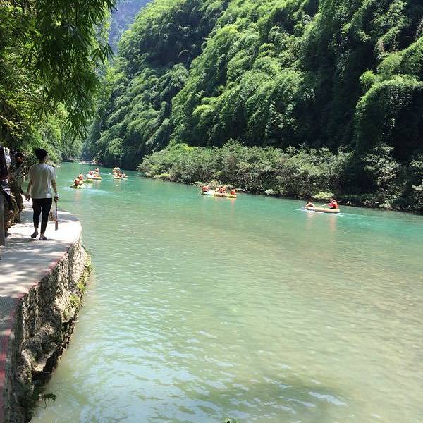 不过下到底,里面的景色确实不错,水质很好,清清凉凉!所以,可能以后不会去了吧这次去有点小遗憾,因为个人身体原因没漂成,所以买了门票进去逛逛。我们走的人行道下去,有点陡,对于恐高的我脚有点发软。不过下到底,里面的景色确实不错,水质很好,清清凉凉!我们边走边玩,一直走到牛角寨...这次去有点小遗憾,因为个人身体原因没漂成,所以买了门票进去逛逛。我们走的人行道下去,有点陡,对于恐高的我脚有点发软。不过下到底,里面的景色确实不错,水质很好,清清凉凉!我们边走边玩,一直走到牛角寨,好几公里,具体几公里,忘了。之前一直听说牛角寨有公路了,心想我们请的代驾会把车开那里等我们。谁知道到了牛角寨才发现,只有观光车出去,而且到出口还有10公里的样子,没办法,我们只有坐观光车出去,60元每人,还是有点小贵。坐了半小时到出口,然后我们就在那里等我们的同伴。在等的过程中,心情有点郁闷,因为看到阿依河出口负责接皮筏的工作人员把各种漂浮物和垃圾往乌江里扔,我家孩子一直在说他们是坏人,不爱护环境,乱认垃圾。我听着很不是滋味,期间我也给工作人员说过,岸边可以放垃圾桶,垃圾不要乱扔,但没人理我。有个年纪大的阿姨还用眼睛斜视我,让人很心寒,高高心心地出去玩,结束地并不开心!所以,可能以后不会去了吧!望大家也呼吁一下,作为游客,我们爱护环境,遵守规章制度,但作为工作人员更应该遵守!) 展开 2015-08-06 14:15