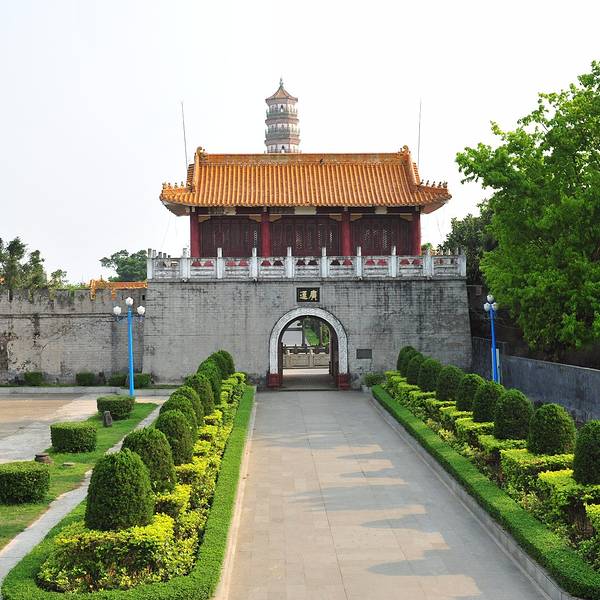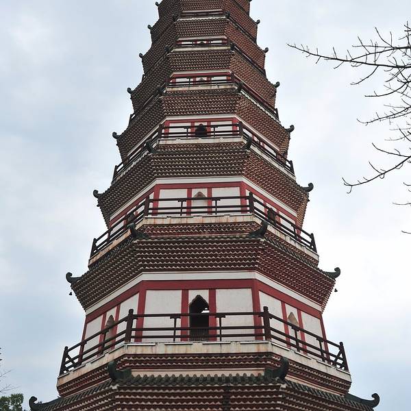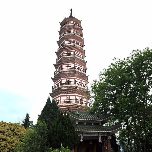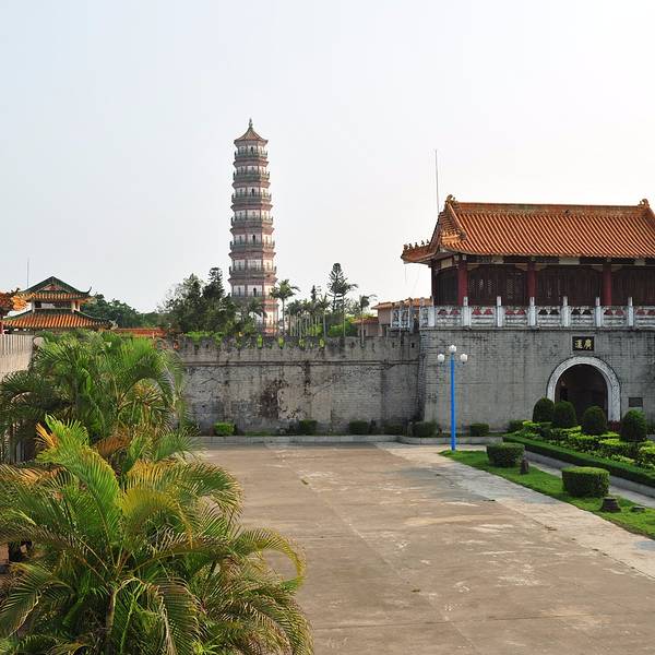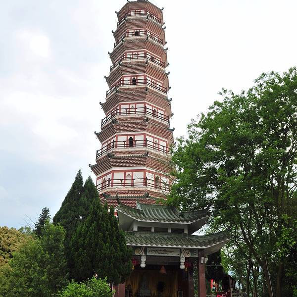 座砖塔高五十米,呈八边形,全部用棱角牙子砖、线砖砌成,拾阶梯而上,内楼共十七层,每层均有美观的拱卷门。登上塔顶,俯瞰雷州,湖海风光,锦绣洋田,尽收眼底。一点一米的塔座,刻有多幅线条粗犷、神态生动的浮雕――猴子摘桃、双鹿戏燕、双凤朝阳、鲤跳龙门、白鹤青松、狮子戏球,常使游客伫足鉴赏,流连忘返。