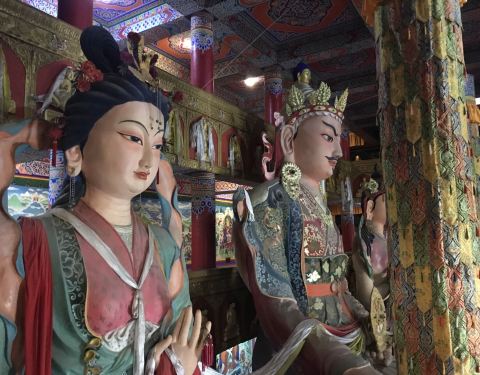 来这里的人也很少,门口都是小饭店和小商铺,主殿供奉的是文成公主和松赞干布,寺院不是很大,30分...赞布林卡位于湟源县的县城,门票30元/人,寺院不大,但总感觉不是很纯正,来这里的人也很少,门口都是小饭店和小商铺,主殿供奉的是文成公主和松赞干布,寺院不是很大,30分钟即可转弯。
