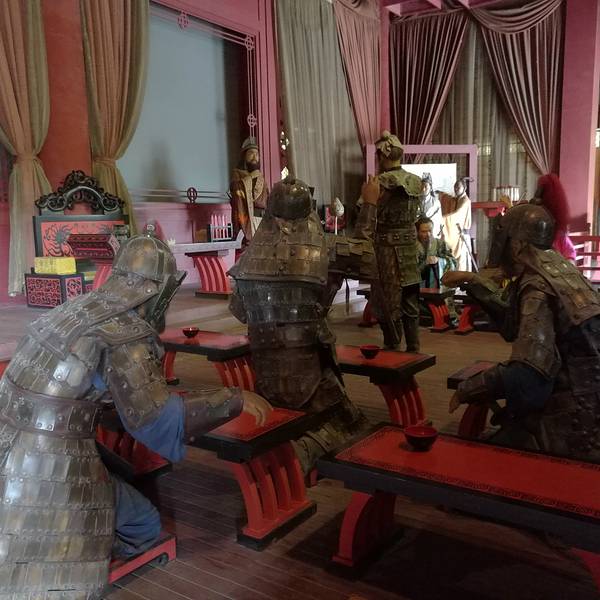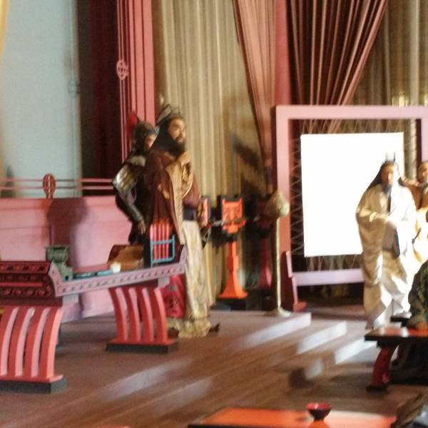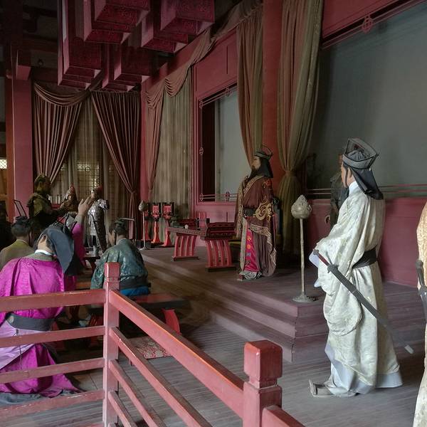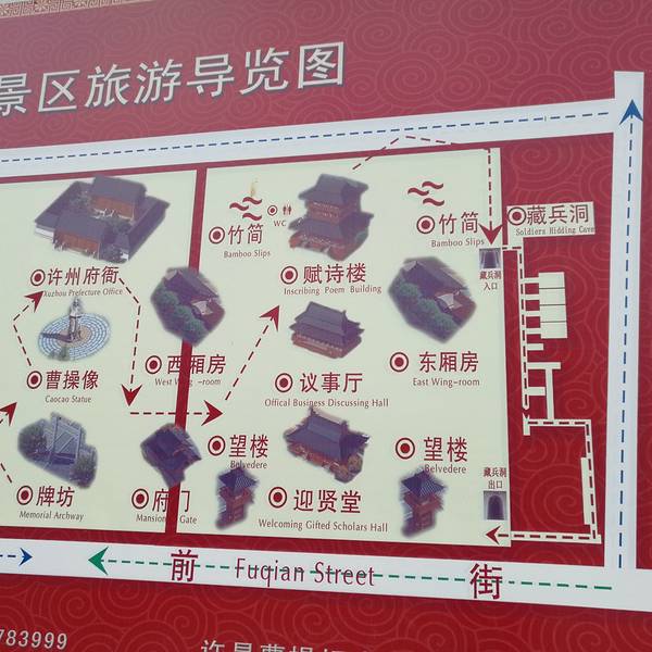 曹丞相府中古迹很少,都是后期仿建的,有对曹丞相生平感兴趣的可以去看一下。藏兵洞中有很多的基础支援设施从许昌博物馆出来后,从博物馆门口乘坐16路或33路都可以直达曹丞相府。曹丞相府中古迹很少,都是后期仿建的,有对曹丞相生平感兴趣的可以去看一下。我是乘坐16路,下车后是一个步行街,沿步行街走就是曹丞相府。...从许昌博物馆出来后,从博物馆门口乘坐16路或33路都可以直达曹丞相府。曹丞相府中古迹很少,都是后期仿建的,有对曹丞相生平感兴趣的可以去看一下。我是乘坐16路,下车后是一个步行街,沿步行街走就是曹丞相府。门票每人¥60(我记着当时好像是¥48进去的)。步行街的宣传图,挺萌的。曹丞相府门口的曹丞相雕像,后面就是许昌府衙指点江山,舍我其谁的霸气,世之奸雄曹丞相府门东临碣石以观沧海议事厅,文武群臣赋诗楼,曹家父子在历史上被称为三曹,其文学造诣深厚。看见这个楼想起铜雀春深锁二乔(不是在这赋的)。楼前的广场上都是三国人物的京剧脸谱,每个脸谱后面都有介绍。竹简上是曹操所作的诗篇从赋诗楼出来就是藏兵洞,是曹操用来秘密转移士兵的地方,可以理解为现在的地下长城。洞中比较冷,有胆小和身体不适的不要独自进去。藏兵洞门口的兵佣,刚进去的时候吓一跳。藏兵洞中有很多的基础支援设施粮仓灶台这里还埋伏了一堆士兵,路过时候小心哈曹丞相府整体浏览图曹丞相府虽然是后来修建的,但是其中关于曹操的历史生平介绍较为详细,尤其是三国迷朋友可以去看看,里面的官渡之战、濮阳之战、赤壁之战等均有介绍。