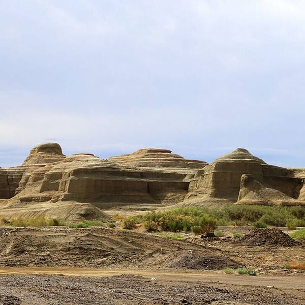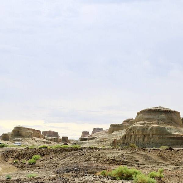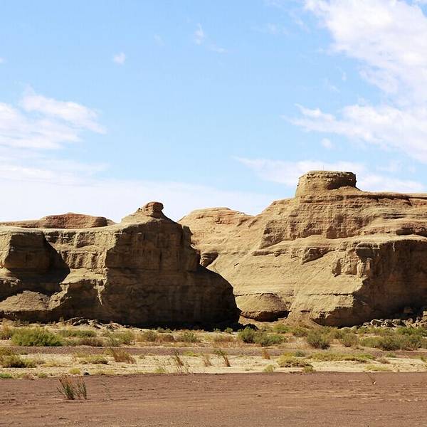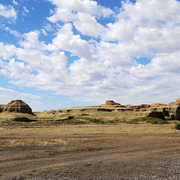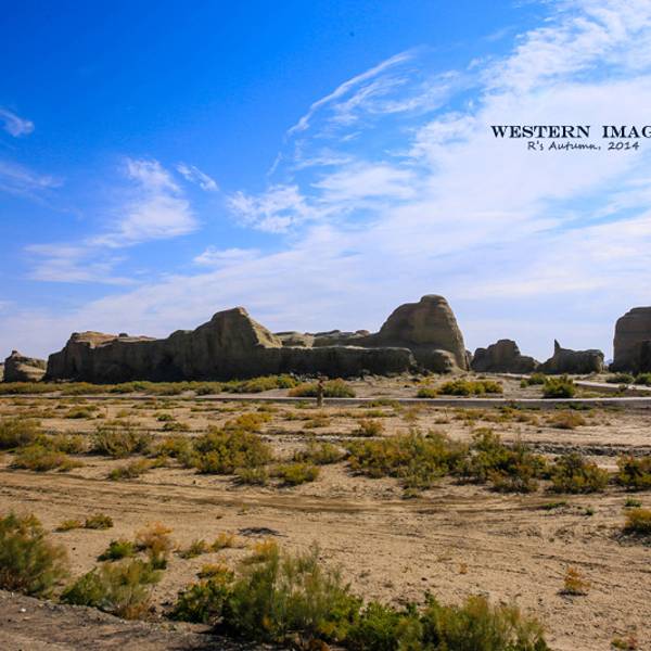 位于市区东北100多公里的乌尔干地,北倚哈拉阿拉特山,方圆约30余公里,是我国罕见的风蚀地貌。亿万年前,这里是淡水湖泊,地壳的沧桑剧变使它形成了戈壁平台,年复一年的风蚀雨剥,使地面形成沟壑、纵横深浅不一的石层,并将石层雕塑成各种奇形怪状的造型:有的酷似杭州的六和塔,有的象北京的天坛,有的象埃及的金字塔。这便是被称作“雅丹地貌”、“风成城”的奇特景象,夜幕降临,则狂风大作,飞沙走石,怪异而凄厉的声音更增添了阴森恐怖的气氛。据测定这是距今2亿5千万年前或2亿7千万年前,地质学上称为二迭纪时期形成的地貌现象。
