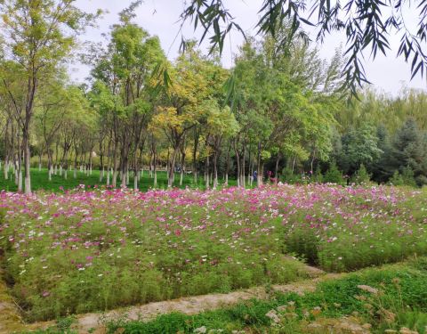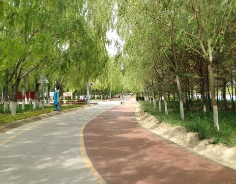 非常大的公园,园内树木茂盛,百花盛开,空气清新,园内铺有塑胶道,非常适宜散步健身非常大的公园,园内树木茂盛,百花盛开,空气清新,园内铺有塑胶道,非常适宜散步健身。每天早晚,附近居民都来散步。天气好时可以远眺祁连雪山。