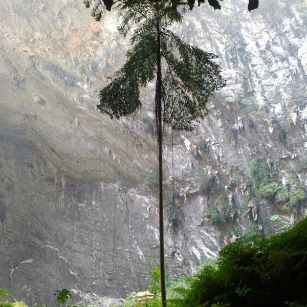 百魔洞是一个石灰岩溶洞,洞中形态各异的钟乳石,精美别致,除了壮美的钟乳石,洞中还有不少珍稀物种,最为珍贵的要数位于中段巨大天坑里的桫椤。