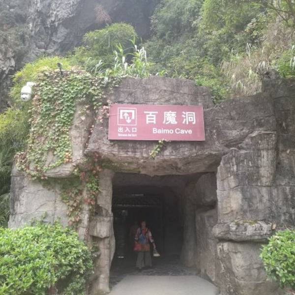 洞的平均高度为80米,宽70米,主游路程4000多米,盘阳河从百魔洞下流过。百魔洞的独到之处还在于它的钟乳石高大气派;据测量,最高的石笋为39米、直径为10米。景点设有:孔雀迎宾、良田万顷、金山猴王、杜甫吟诗...