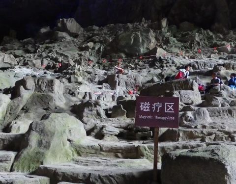 百魔洞名字听上去很霸气,是一个很大的石灰岩溶洞,中间有一个天坑连接前后两个洞口,这里最大的特色就是磁疗,据说每天在这里躺一下可治百病,很多游客都是为此而来。