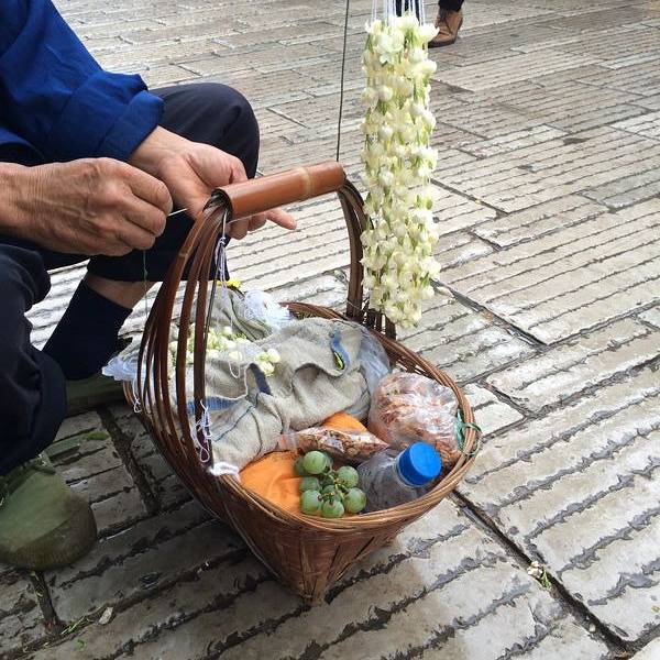 一条街,路两边是各种摊位,小吃啊,饰品啊,手串啊,植物什么的,挺有意思的,边走边看