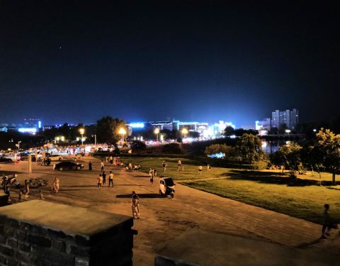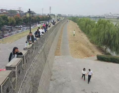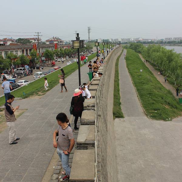 好吧,一天跨了三个城市,我们一家子太有活力了。 但当时,似乎丝毫没有疲劳感。 虽然寿县属于六安市,但距离淮南市里仅有半个小时的车程。 选择一个旅行地点其实很简单,可能为访一位故友,可能为赏一处风景,可能为登一座高山,一个简单的点,就可以hold住你的心,然后不远千里前往。 因为寿县是历史文化名城,因为寿县拥有国内七大保存完好的城墙之一。于是,我们不远千里,把此行目的地落在这里。 找到小旅社住下后,就开始了城墙拉力。整个县城向北发展,北城门是最繁华的地方,游人、商人、本地人交织在一起,广场舞、k歌、遛弯,很生活,很安逸。 从北门开始向东,开始我们7.1公里的城墙拉力赛。用两个小时的时间,环这个3公顷多的古城一周,由繁至简,似乎经历了三国时代的历史沧桑。