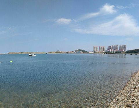 在大连旅顺口区的东边,老城区和新港开发区之间吧,夏天游泳或是沙滩漫步看看夕阳应该不错,冬天简直是遭罪,太冷了。风太大。也没几个人。