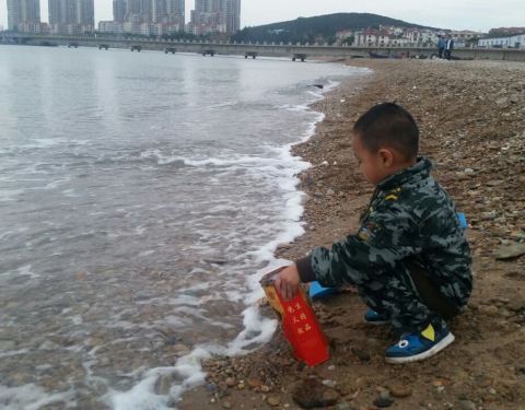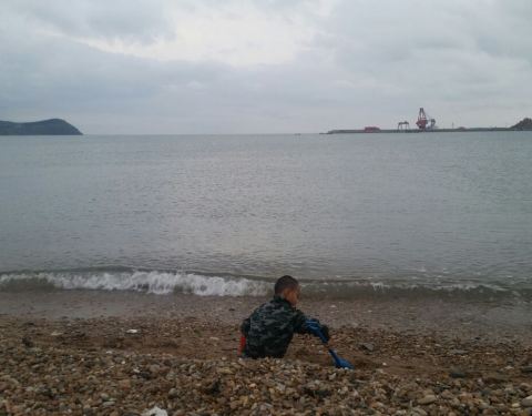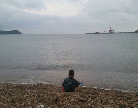 十一的傍晚有些凉,广场不算大,但很惬意,海水很清澈,鹅卵石滑滑的,儿子很喜欢玩,扔扔石头,搓搓沙子,很适合亲子游,而且路很好走