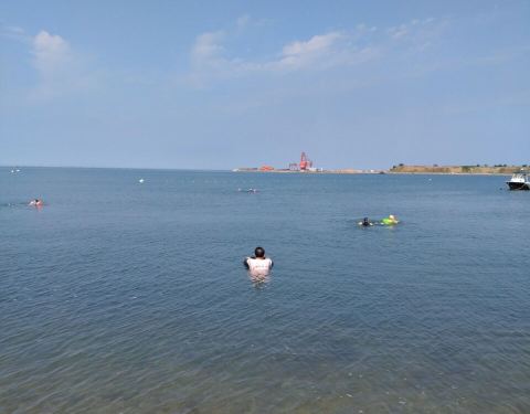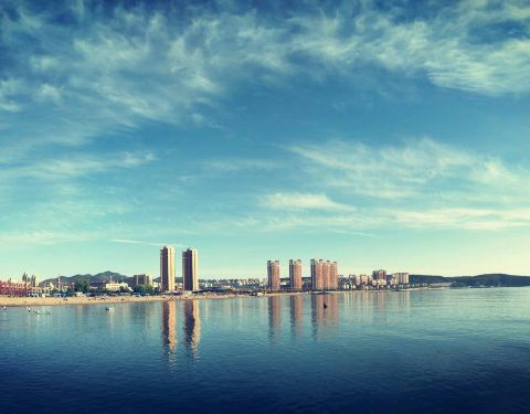 ...的东边,老城区和新港开发区之间吧,夏天游泳或是沙滩漫步看看夕阳应该不错,冬天简直是遭罪,太冷了