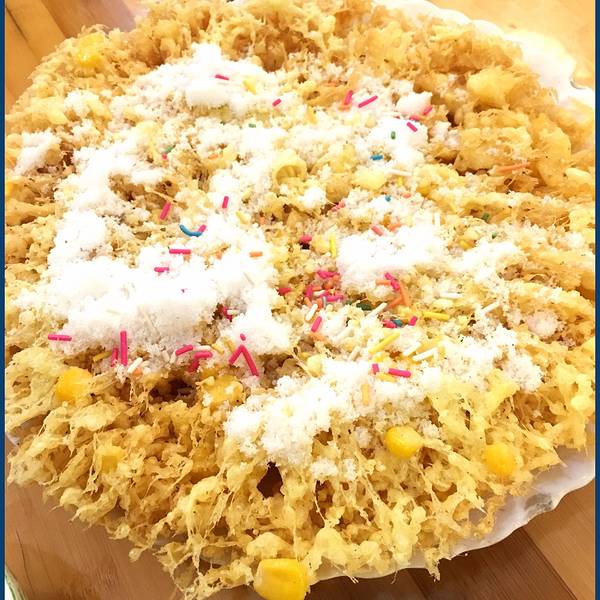 蜂窝玉米:玉米粒加鸡蛋加面粉,第一次见这种做法,但是超级好吃,甜甜的,就是量太大