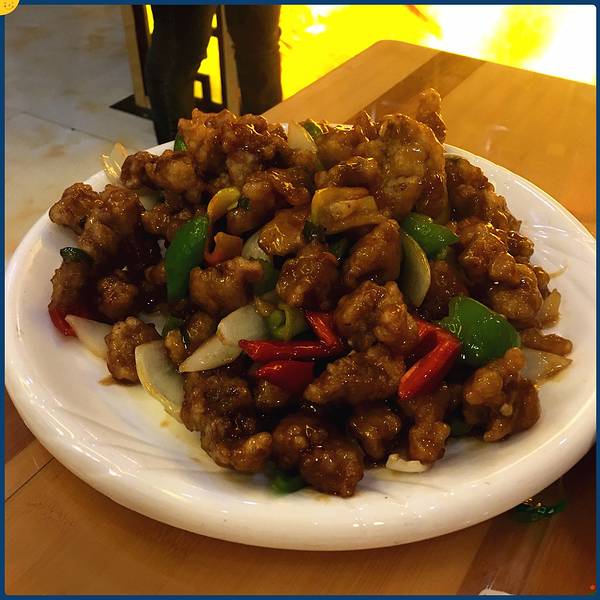 蜂窝玉米:玉米粒加鸡蛋加面粉,第一次见这种做法,但是超级好吃,甜甜的,就是量太大。溜肉段 咸味,肉比较瘦。 只能说东北菜量太大,两个人点两个菜都要剩一半。。。 也无法打包,真的好浪费啊。
