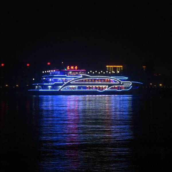 知音号游轮:晚间登船体验民国风情,从江面视角仰望大桥夜景。