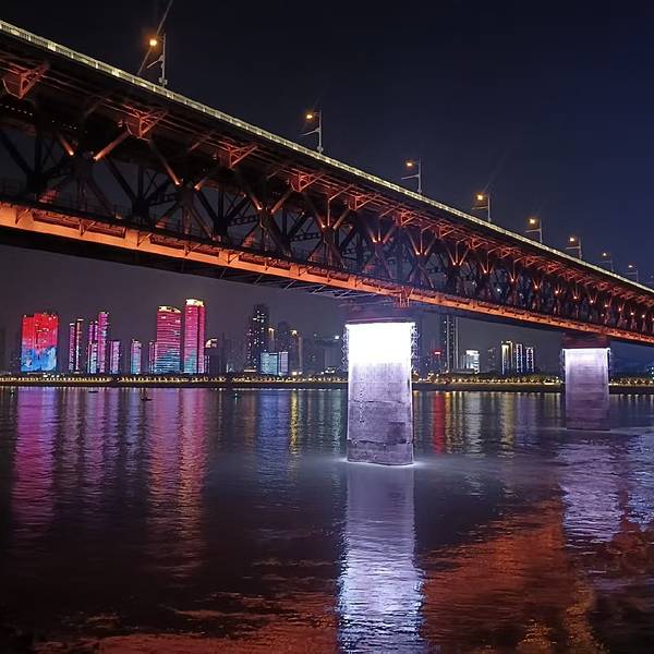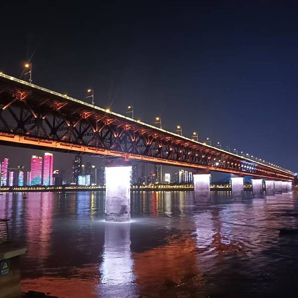 夜游长江:夜晚的长江大桥灯光璀璨,与长江的波光粼粼交相辉映,十分壮观。您可以选择乘坐夜游船,在长江上欣赏大桥的夜景,同时还能领略到武汉两岸的夜景风光。