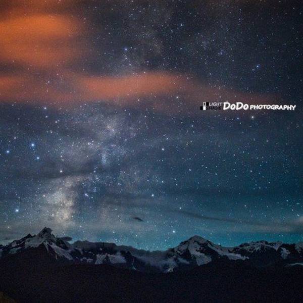 日落后天空没有任何云彩,DODO已经感觉到了,卡瓦格博的银河景观即将来临!晚上8点半,天空没有一丝多余的云彩。 正式开始银河拍摄!