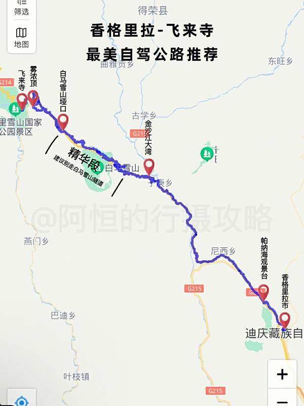 必须自驾。⚠️注意:如果直接导航【飞来寺】默认的路线是最近的【白马雪山3号隧道】,这样就错过了最美的白马雪山垭口段景色。所以导航的时候一定要设置途径点【白马雪山垭口】,这样导航路线就会在经过隧道前拐上风景如画的旧西景线。全程约4.5小时车程(若走隧道车程约4小时)
