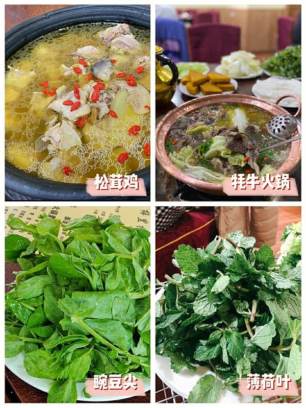 2⃣️镇上最有名的餐厅就是梅里特色火锅店,味道和独克宗古城里的火锅店差不多,不过在飞来寺有限的选择中算是最好的,价格稍贵一些。推荐松茸鸡、牦牛火锅、豌豆尖、青稞饼。注意节日晚餐疯狂排队!