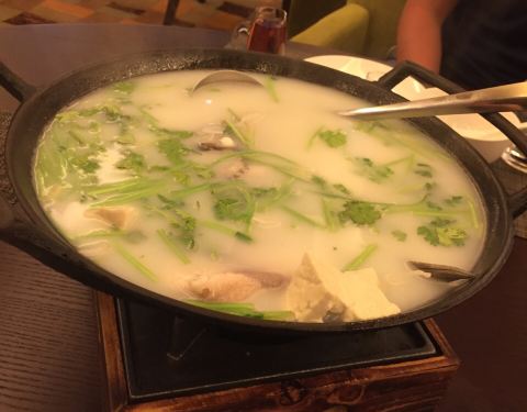 到黄山德懋堂度假,朋友推荐来的一家农家菜馆。从德懋堂大门出来以后右转上坡,看到水库的浮桥以后过去,右手边的白房子就是,见图二。 很淳朴的老两口,家里只能坐一桌客人,就坐在老宅子的堂屋里边儿吃饭,很有感觉,好像是过去走亲戚的样子。 菜全是当地土菜,笨鸡,老鸭,腊肉,丝瓜,自己地里边种的新鲜蔬菜,最大的惊喜是一块完完整整的锅巴。没有很多调料的味道,完全是纯粹的农家土菜,吃的很过瘾,鸡汤一口没剩。 老人家的孩子都在外边,两个人住在这里,看到客人来很高兴,一起也可以聊聊天,还送我们喝了当地的黄山毛峰。 整体上很不错,很推荐德懋堂的客人来,美中不足的地方,就是走起来略微远了一点点,如果再近一点就更完美了。