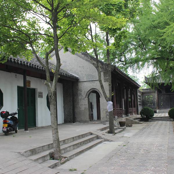 清真寺座落在西大街清真寺巷内,相传这座清真寺始建于唐,经考证为明代建筑。1981年维修寺院时,发现两块藏于殿顶内的志年望砖,铭文一为“明天启年建,道光年重修”,一为“光绪年重修”。清真寺坐西向东,总面积5600多平方米。寺内有三进重院,前院正门为大中门,正中是主建筑物无相宝殿,即礼拜殿,殿前有石台,两厢为阿文教学用房。后院是由环绕无相宝殿围墙形成。院内有4棵绿荫蔽日的参天银杏树,寺院肃穆、庄重。