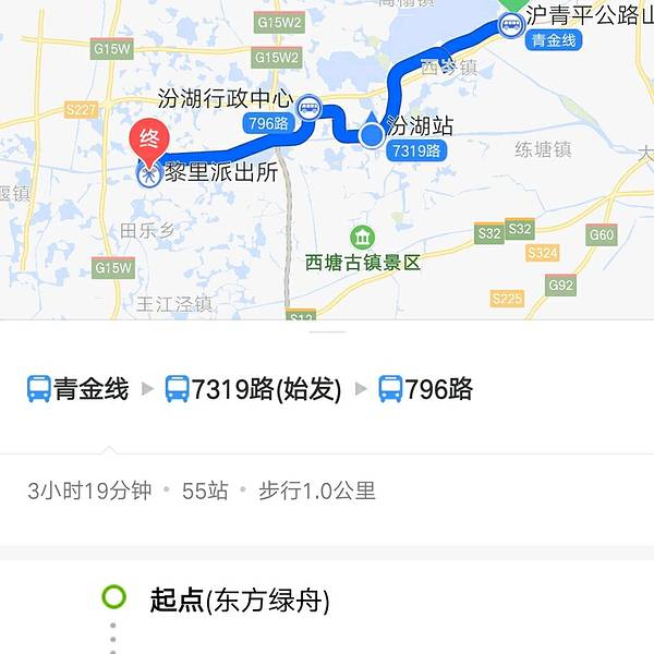 2、沪朱高速专线:人民广场-朱家角,在朱家角转青金线或青商线到【沪青平公路山湾】站或【沪青平公路庆丰】站下。