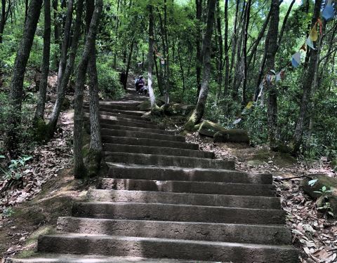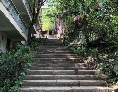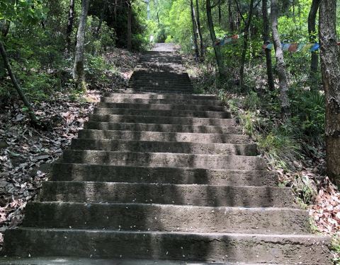 ...梯步,很陡峭,上山途中几乎没有休息的地方,实在走不动了,只有在梯步上坐下歇歇,真是累得汗如雨下