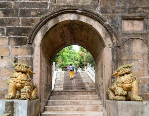 观赏了下三昧的景观后,就沿着右侧的山路一路攀登上山,上山的路全是梯步,很陡峭,上山途中几乎没有休息的地方,实在走不动了,只有在梯步上坐下歇歇,真是累得汗如雨下!山外骄阳似火,可上山的路上,因为山上...
