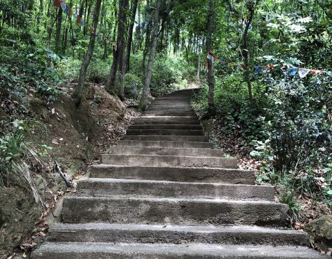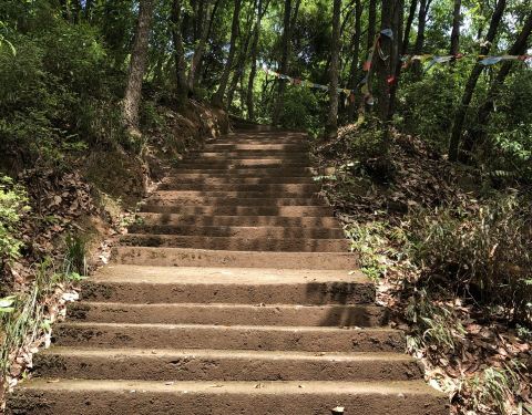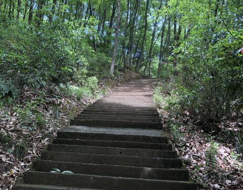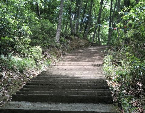 登三昧水从下三昧到上三昧的攀登过程中,由于梯步陡峭,几乎要攀登220多阶梯才有一个小平台