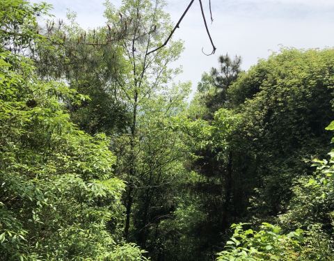 观赏了下三昧的景观后,就沿着右侧的山路一路攀登上山,上山的路全是梯步,很陡峭,上山途中几乎没有休息的地方,实在走不动了,只有在梯步上坐下歇歇,真是累得汗如雨下!山外骄阳似火,可上山的路上,因为山上大树林立,遮天蔽日,只有星星点点的太阳射在梯步上。经过40多分钟的坚持,终于到了山顶!此时已经疲惫不堪,看来平时锻炼太少了!如果你想让自己出出汗,就到这来登山吧!