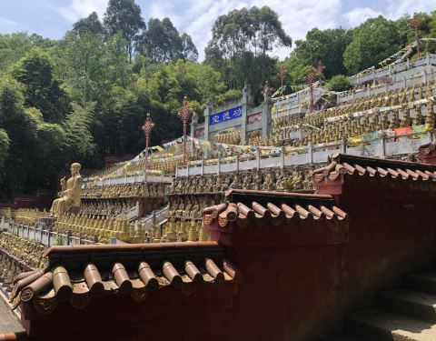 站在山上俯瞰下三昧,感觉还是很壮观在彭州市三昧水下三昧的寺庙间,塑有形态各异的800罗汉,800罗汉的塑像所需费用是善男信女们捐功德捐助的。站在山上俯瞰下三昧,感觉还是很壮观。