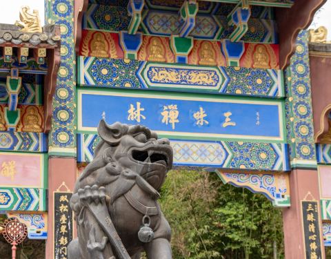 在彭州市三昧水下三昧景区,修建了许多的寺庙,如大雄宝殿、神仙庙、送子庙等, 来三昧水景区参观这...