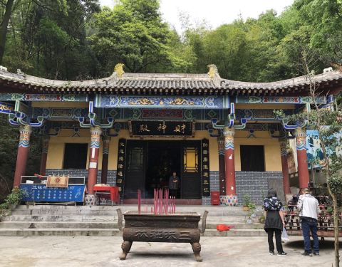在彭州市三昧水下三昧景区,修建了许多的寺庙,如大雄宝殿、神仙庙、送子庙等, 来三昧水景区参观这些雄伟壮观的宝殿、寺庙的游人并不多,许多人到此是为了登山锻炼身体。